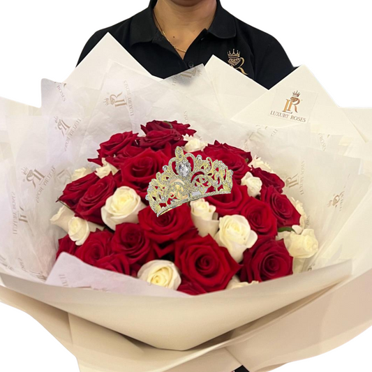 FOR MY QUEEN WHITE AND RED ROSES BOUQUET