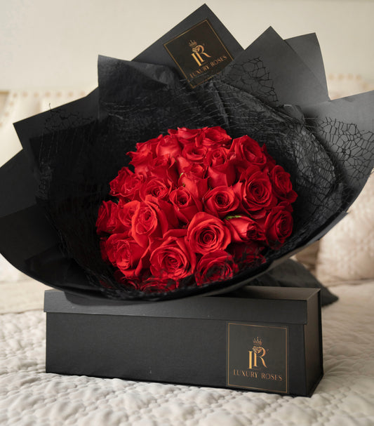 RED ROSES BOUQUET - BLACK DIOR WRAPPING -