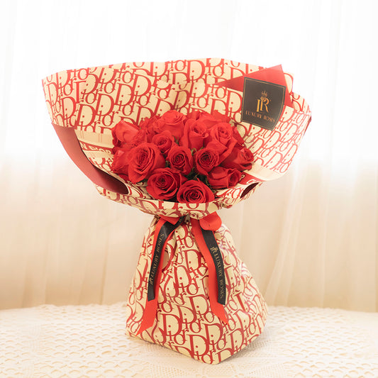 RED ROSES BOUQUET - RED DIOR WRAPPING -